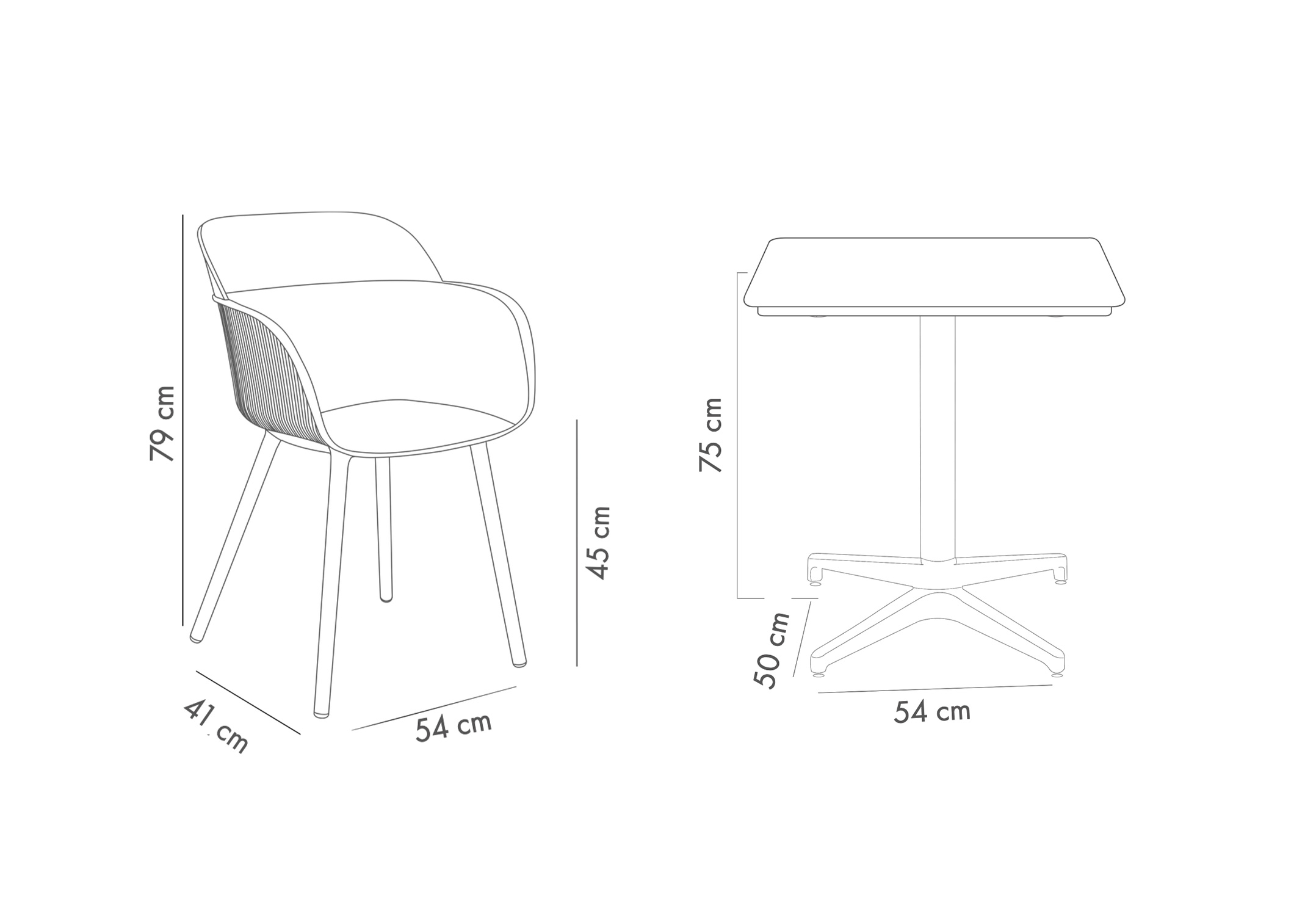 TİLİA BİSTRO SET MOON MASA SABİT 70X70 KARE - SHELL-P KOLTUK