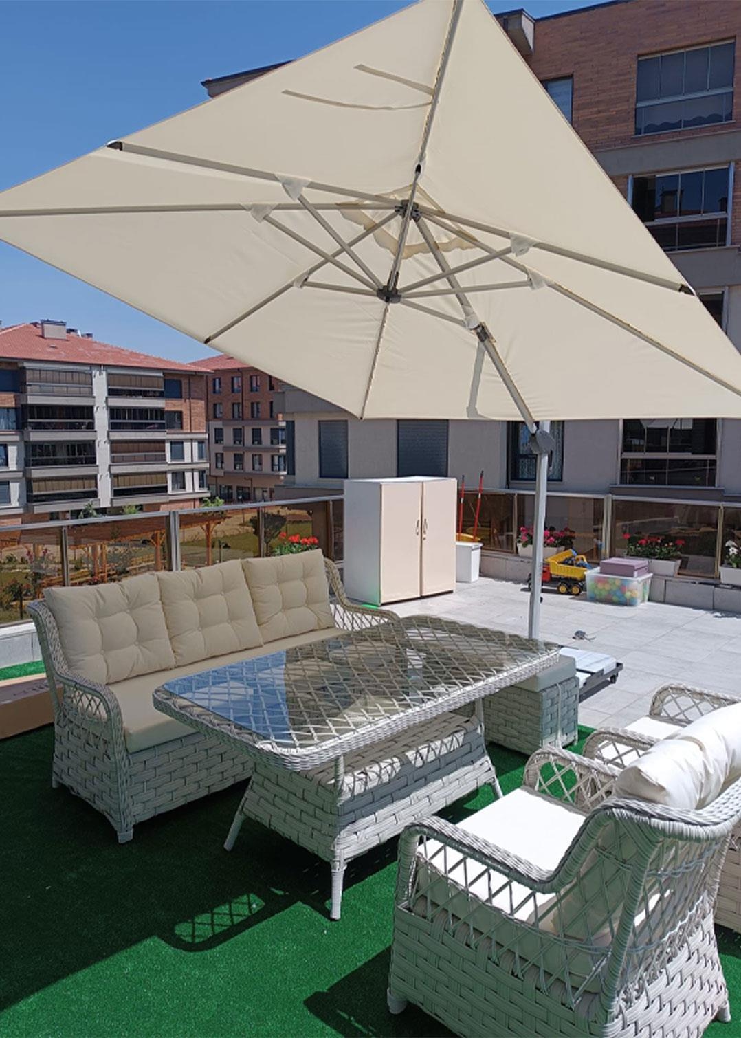 • UV IŞINLARA VE ZORLU HAVA ŞARTLARINA DAYANIKLI 1. SINIF PLASTİK RATTAN MALZEME.