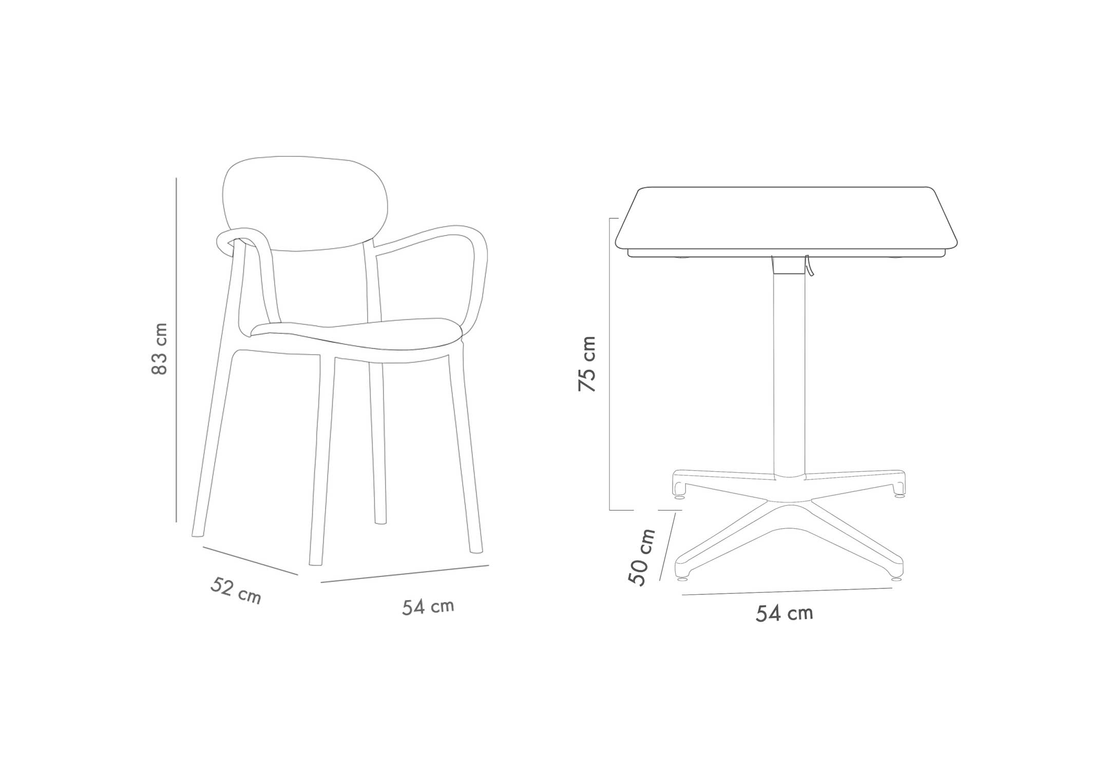 TİLİA BİSTRO SET MOON MASA KATLANIR 80X80 CM KARE - DUO KOLTUK