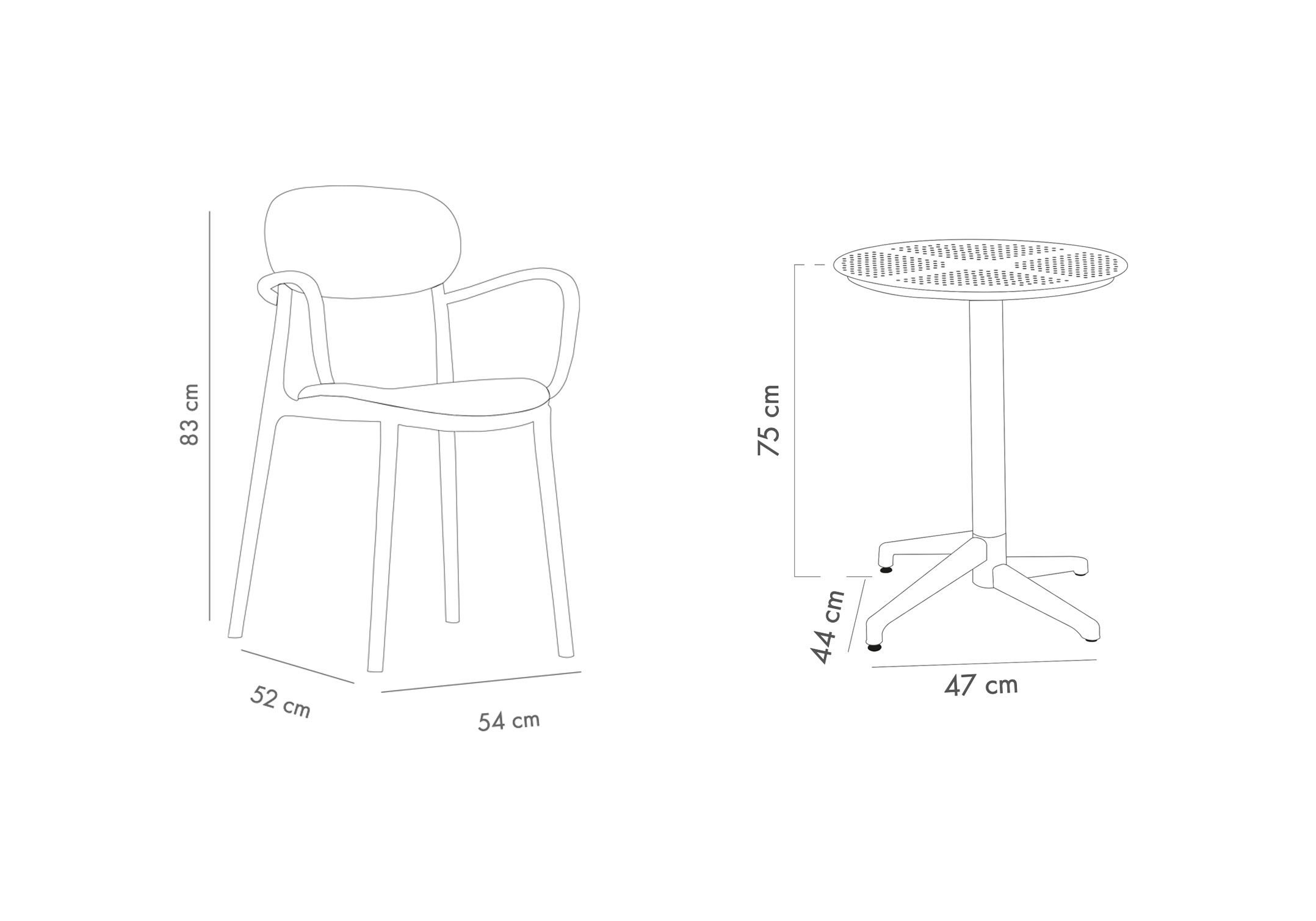 TİLİA BİSTRO SET MOON MASA SABİT Ø60 CM YUVARLAK - DUO KOLTUK